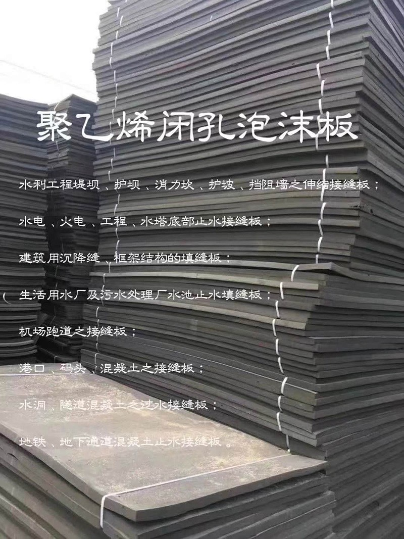 (PE聚乙烯泡沫接縫板、BW嵌縫板,填縫板,水利工程伸縮縫、高密度聚乙烯泡沫板)聚乙烯閉孔泡沫板的應用范圍: